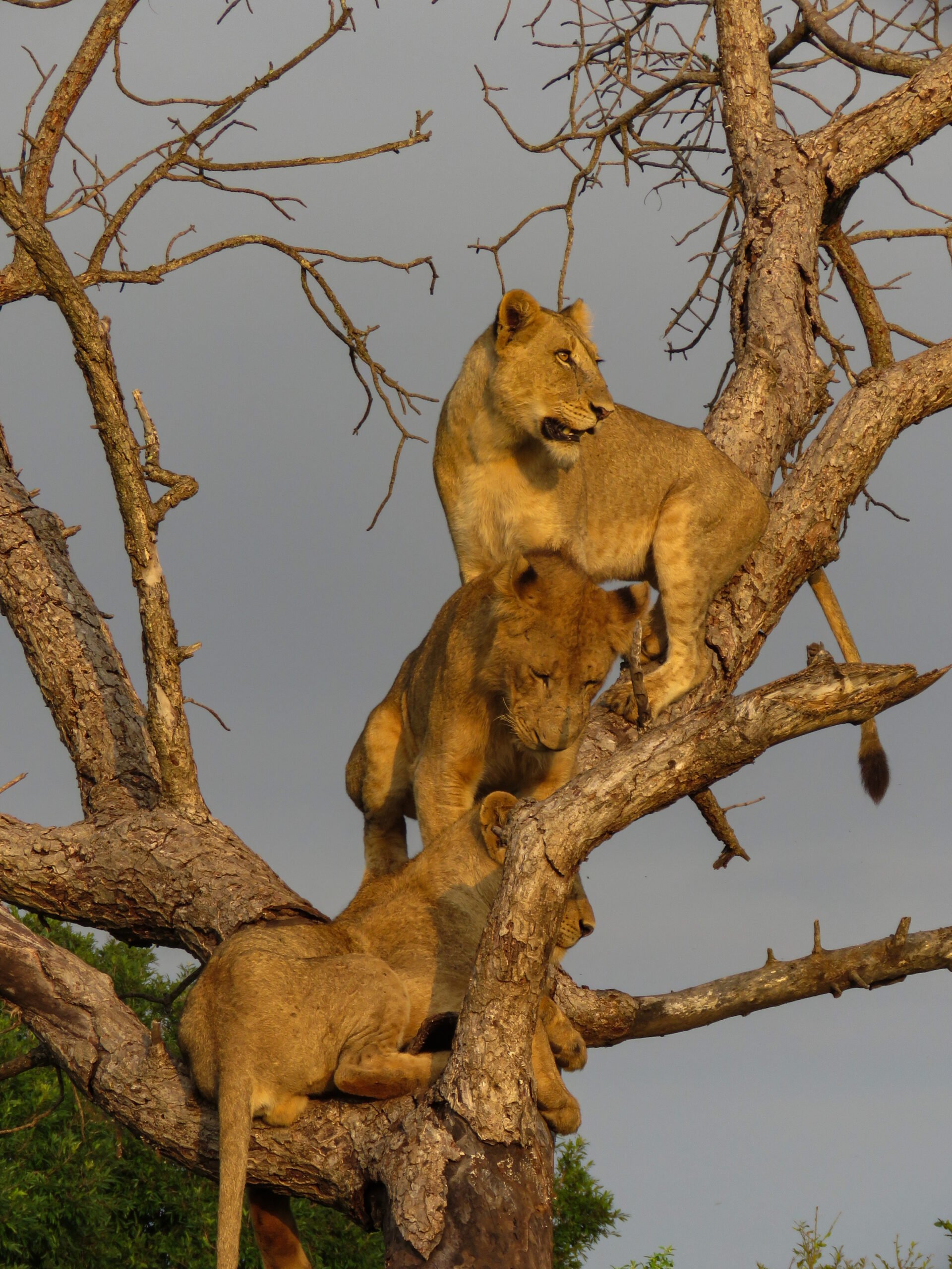 Although lions prefer to remain on the ground, extreme circumstances can push them to adapt. While leopards are celebrated climbers, lions generally lack the agility and motivation to scale trees—unless forced by necessity. In this case, avoiding the floodwaters was motivation enough. Once settled in the branches, some lionesses dangled their paws and even managed to catch a few moments of rest, while others kept watch over the territory from their elevated position.