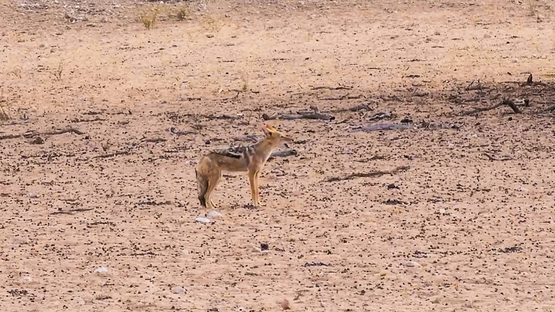 In the Kgalagadi Transfrontier Park, safari-goer Eddie Von B filmed a peculiar standoff between two very different predators. A leopard was seen resting peacefully beside a waterhole, taking long sips under the shade, when a jackal suddenly appeared and began making sharp, grating calls aimed directly at the big cat. Despite the noisy provocation, the leopard remained completely unbothered.