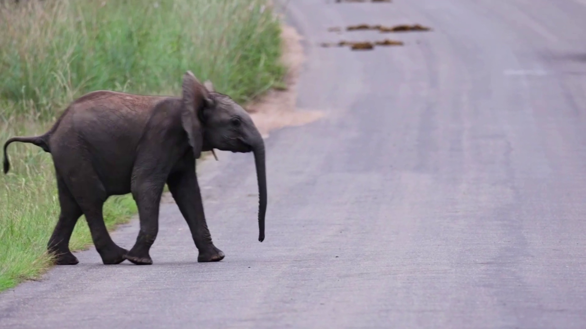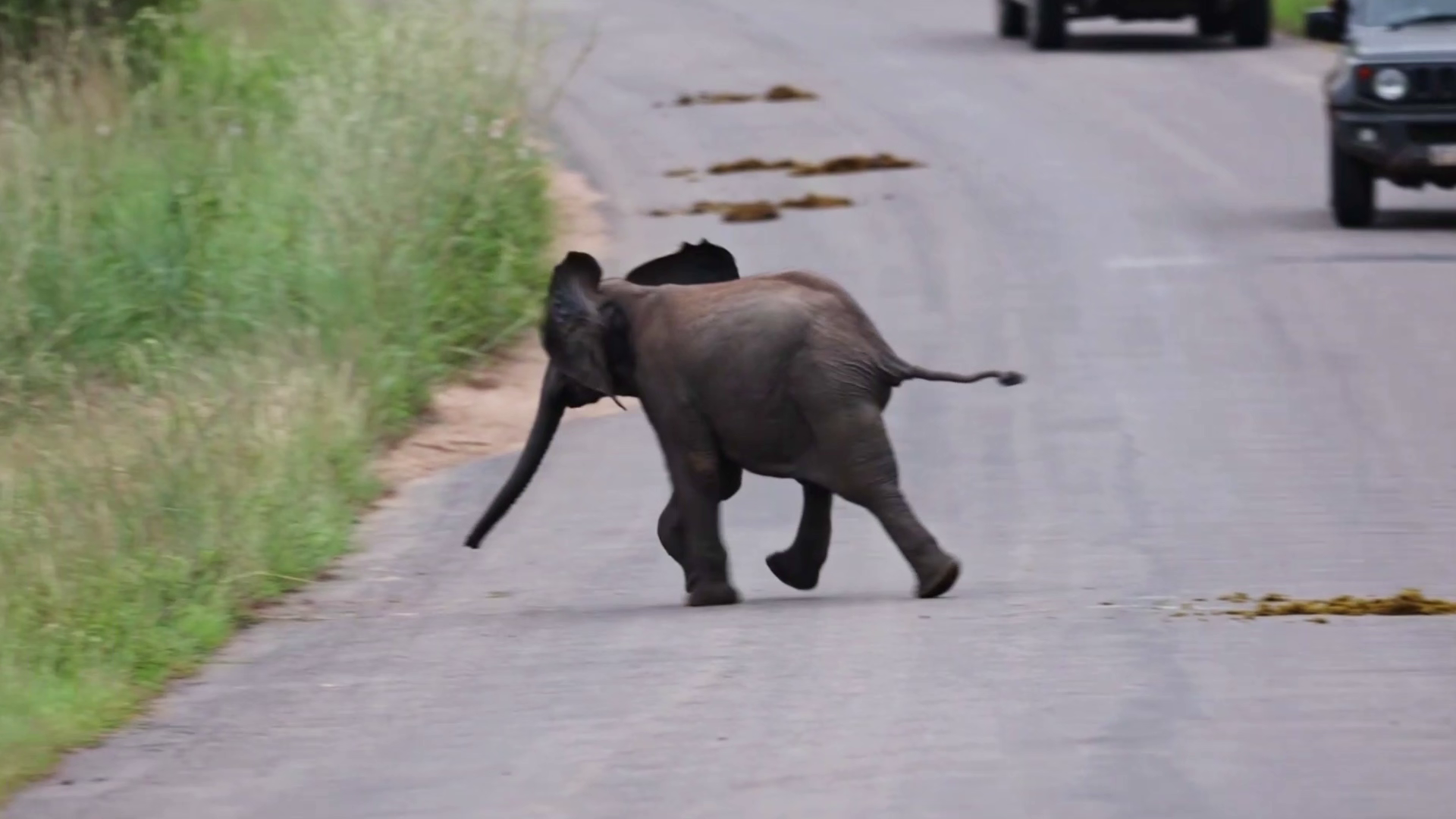 However, whether just to be sure or wishing to brag to mum about his traffic-stopping skills, the little guy then turns and runs down the road to where mum is peacefully feeding on the roadside.