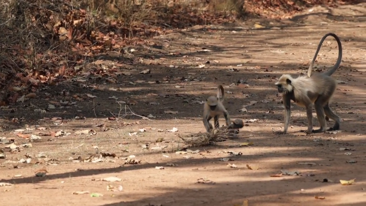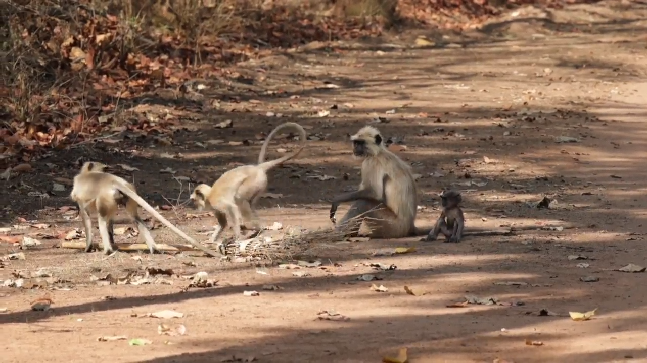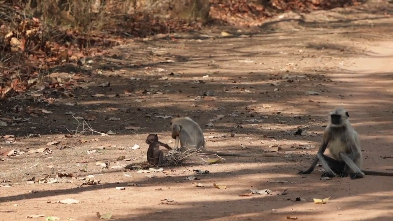 The baby was more interested in the bundle of sticks that made up the brush, so this time they didn’t get in each other’s way. Whether the langurs managed to come up with a game using the broom or not remains unknown, but they were giving it their best shot.